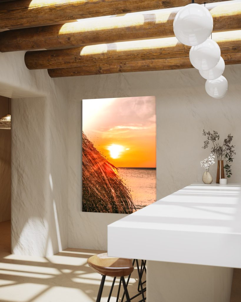 De warme tinten van de ondergaande zon vermengen zich met subtiele details, die de diepte en schoonheid van dit moment versterken. De zorgvuldig aangebrachte accenten maken van dit kunstwerk een opvallende toevoeging aan elke ruimte, een eyecatcher die niet alleen een verhaal vertelt, maar ook emoties oproept.